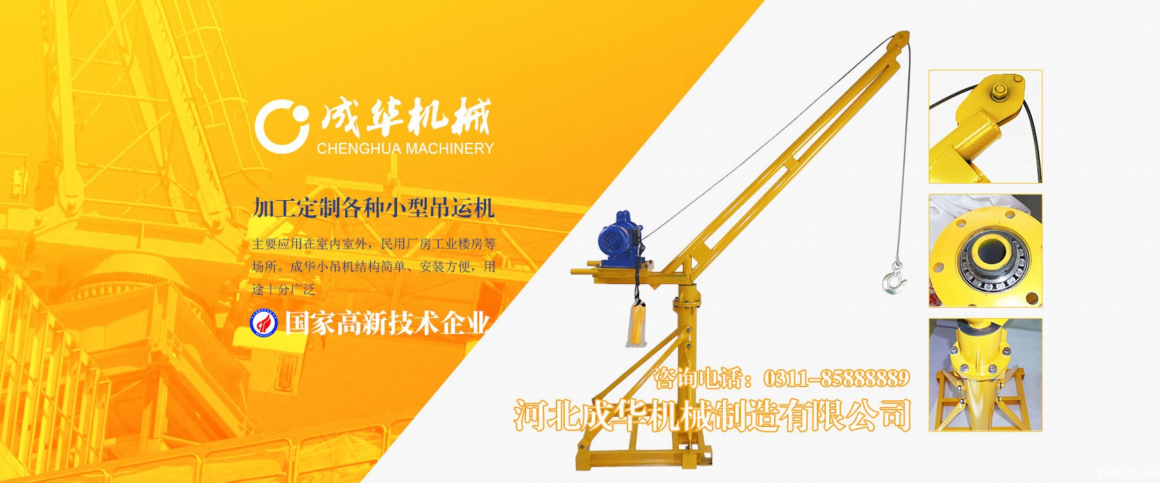 星空平台app官方下载为国家高新技术企业,旗下吊运机制造厂是家专业生产制造星空app登录官网、手提式小吊机附属工厂,我厂产品主要应用在室内室外,民用厂房工业楼房等场所。成华小吊机结构简单、安装方便,用途十分广泛,小吊机产品被广泛应用于机械制造、电子、汽车...